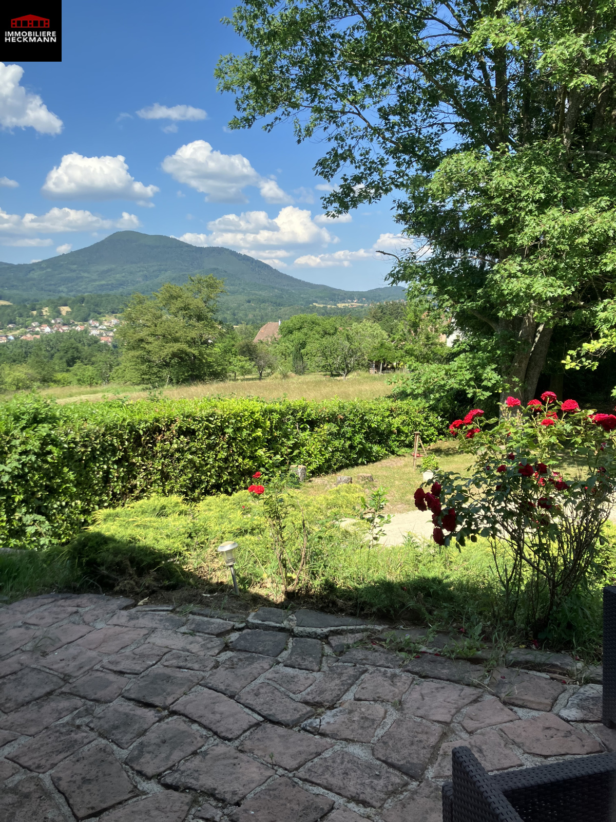À l'extérieur un grand terrain de 27 ares joliment arboré avec une magnifique vue sur la vallée de Villé.